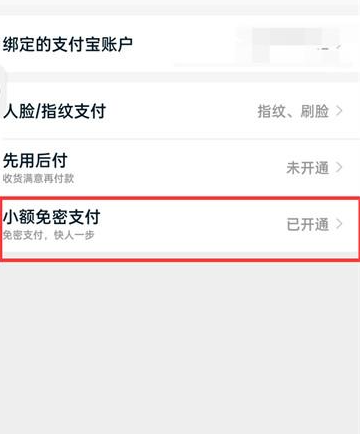 4、进入到支付设置的页面点击【小额免密支付】;