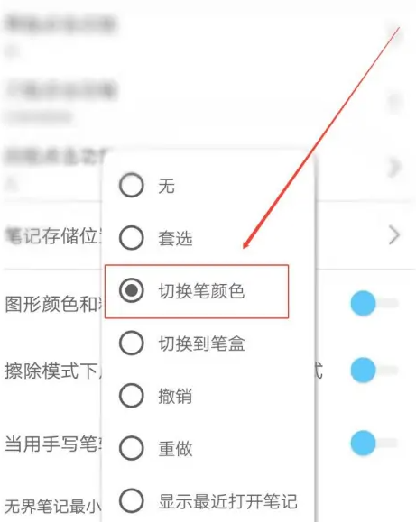 4、然后选择切换笔颜色。