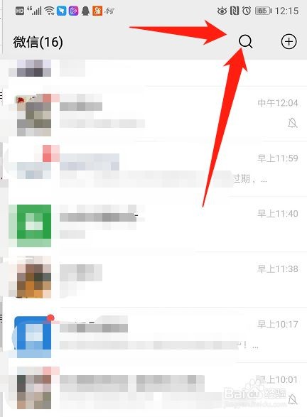 1、首先我们打开手机,进入微信首页当中,会看到右上方有个放大镜,点击“放大镜”。