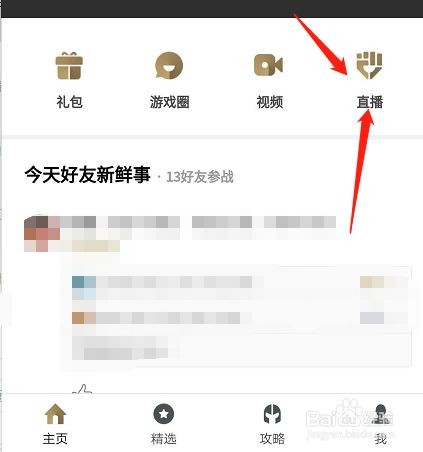 3、进入下图界面后,点击下图位置中的“直播”选项。