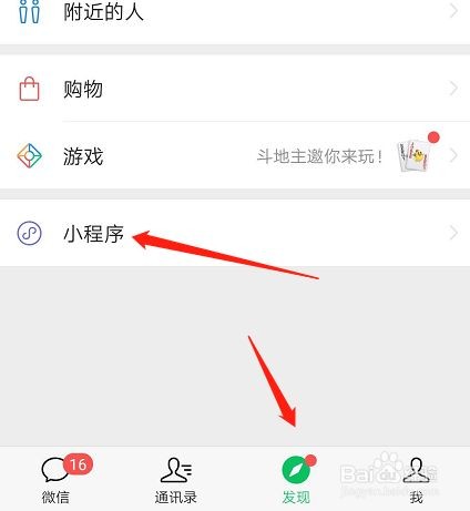 5、如果以后还想观看王者荣耀直播视频,可直接点击微信中的“发现”,找到“小程序”。