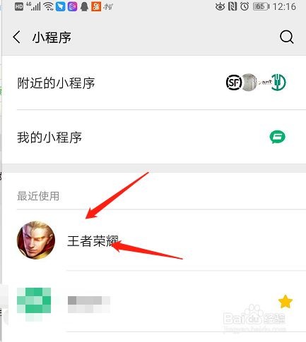 6、点击“最近使用”的“王者荣耀”即可,然后去找直播类视频。