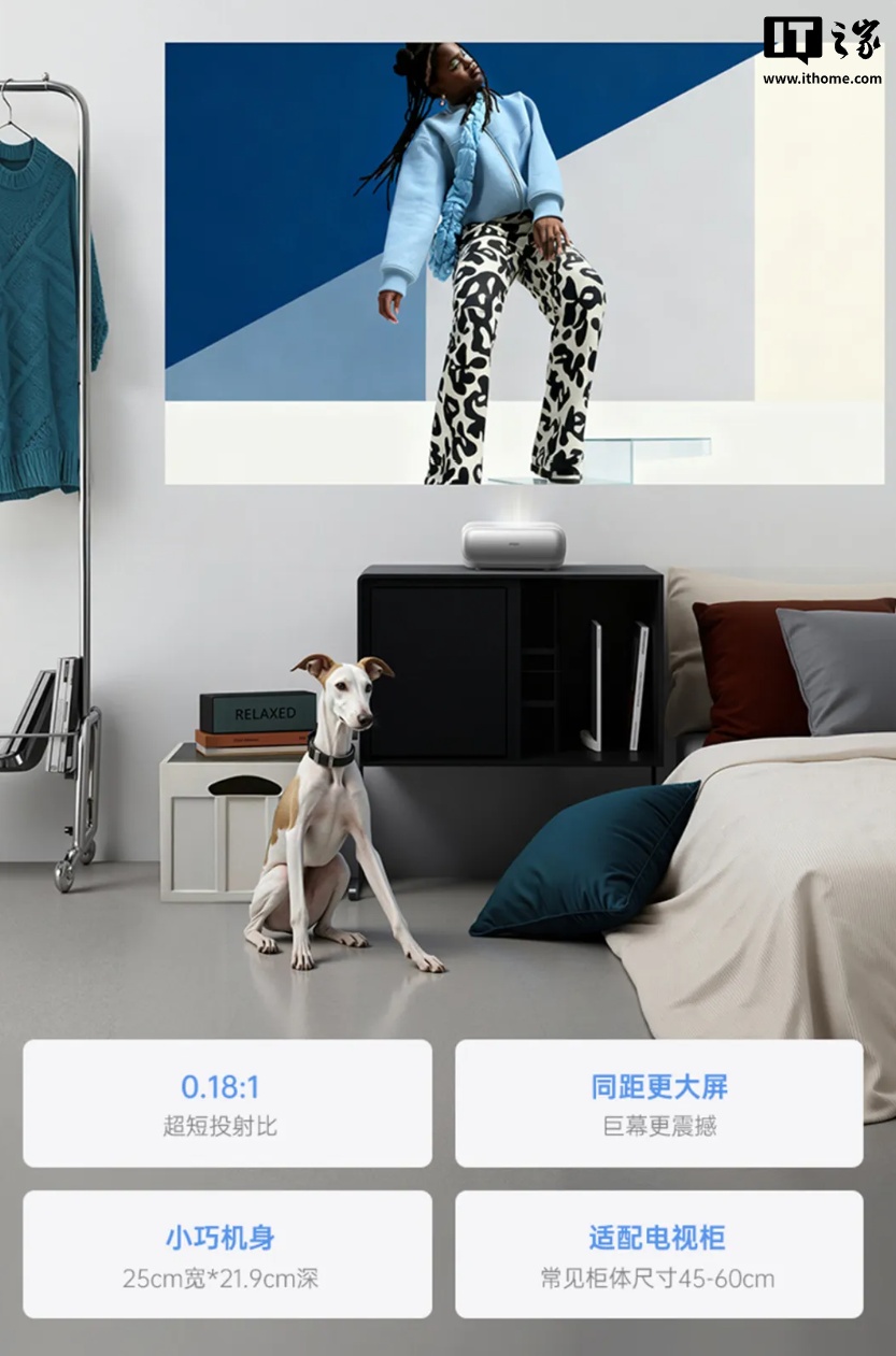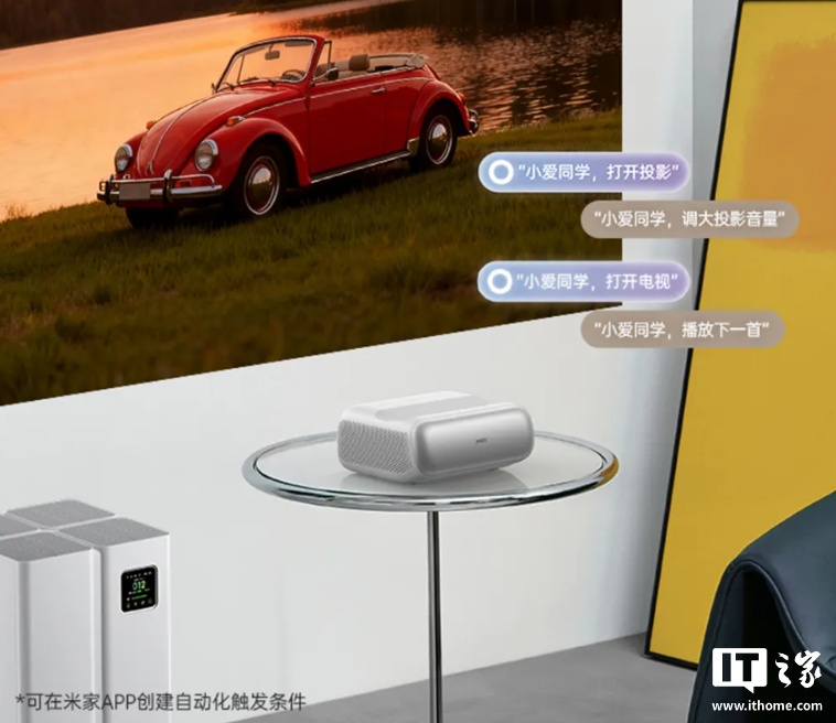 该机还支持 VRR 可变刷新率,配有 2GB + 64GB 存储、HDMI 2.1 接口;还有米家智能联动,可通过小爱同学远程操控。