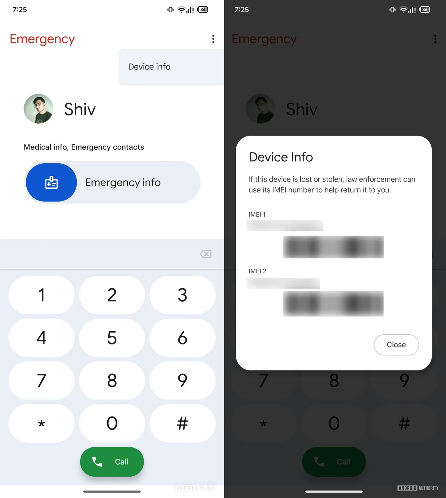 Android Authority 发现,新版 Personal Safety 加入了“设备信息”入口,用户在锁屏点按“紧急呼叫”界面右上角菜单即可查看 IMEI。此外,界面还将显示提示文字:“若设备遗失或遭盗窃,执法部门可凭其 IMEI 协助找回。”