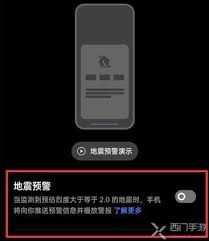 5. 开启地震预警:在自然灾害预警设置中,找到“地震预警”选项,点击右侧的滑块将其开启。