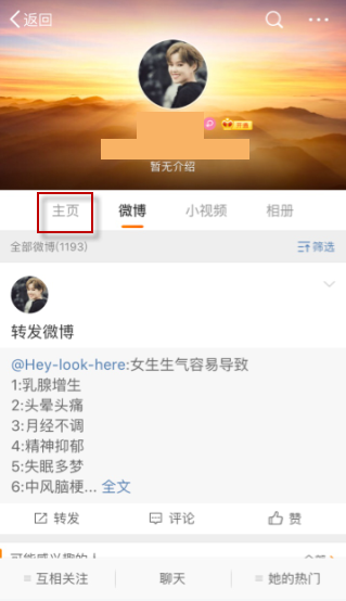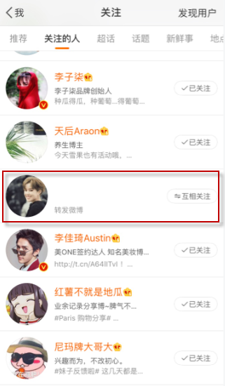 2、在关注的人界面,找到并点击要查看关注超话的用户;