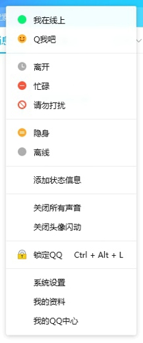 5、电脑端QQ可以直接点击状态栏,然后找到“离线”状态,点击设置即可。