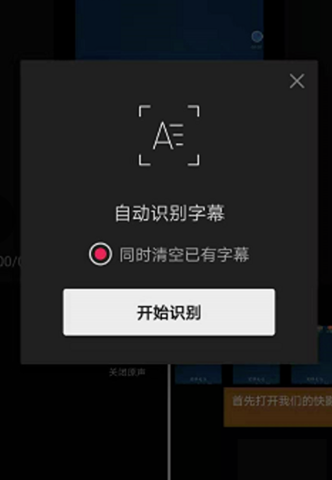 2、选择识别字幕,在弹出的窗口中勾选同时清空已有字幕;