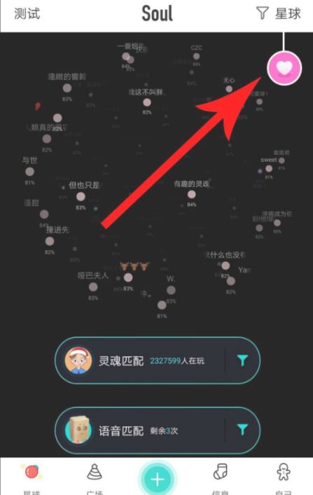 2、在星球页面,点击右上角红色小球,这个就是恋爱铃