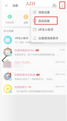 方法一:打开b站app的消息界面,点击右上角的更多图标,点击自动回复,即可设置。