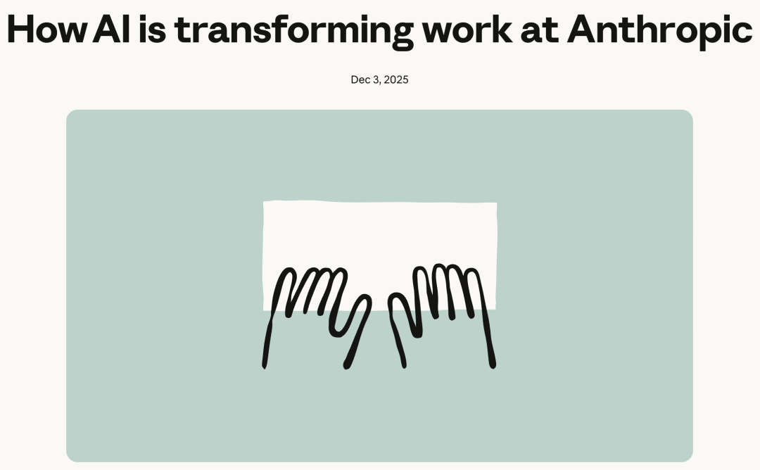 与此同时,Anthropic 最新发布(12 月 3 日)的内部深度调查《AI 如何改变工作》,正在揭示这场宏大叙事下微观个体的命运 —— 工程师的「空心化」和学徒制的崩溃。