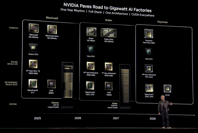 英伟达的 GPU 路线图中,2027 年底,最新芯片「费曼」也将启用。
