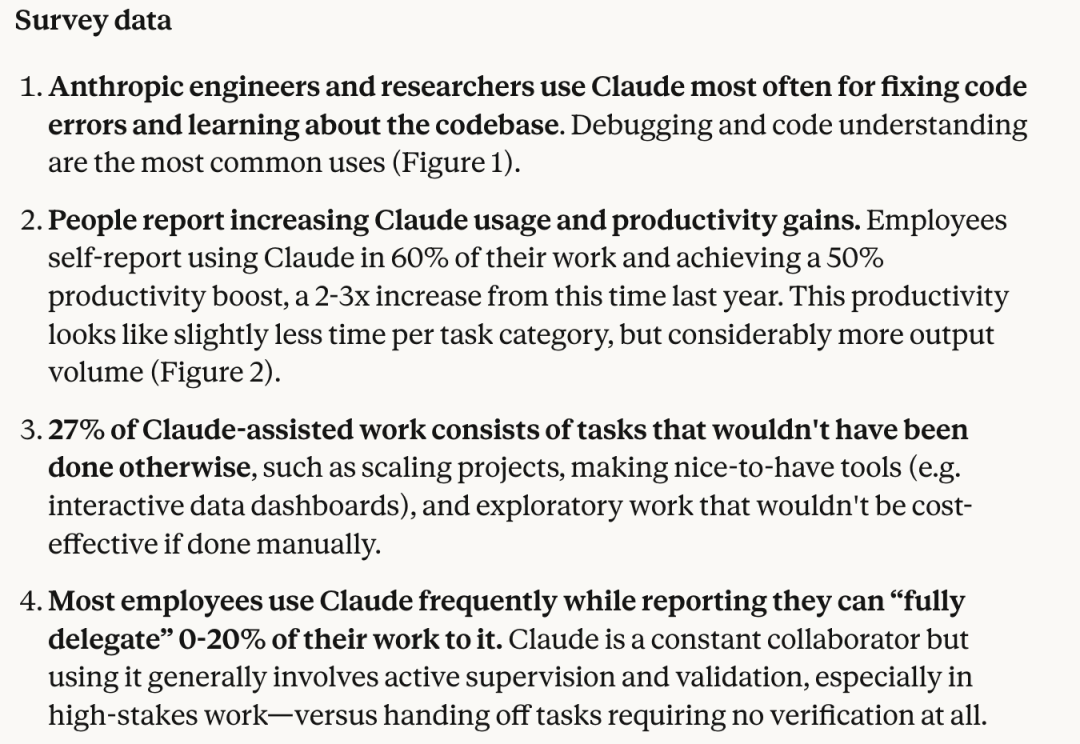 如果说 Kaplan 的预测是对未来的宏大叙事,那么 Anthropic 发布的《AI 如何改变工作》报告,则是一份关于当下的、充满血肉真实质感的田野调查。