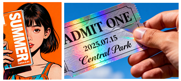 在广告营销场景,Seedream 4.5 能直接生成出图即用的“成品级”海报与活动物料。无论是波普风杂志封面还是活动票务排版,它都能产出视觉素材,让品牌减少反复修改。