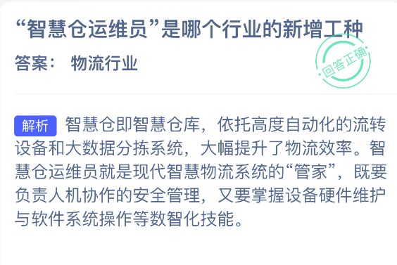 以上就是“智慧仓运维员”是哪个行业的新增工种?支付宝蚂蚁新村最新答案2025年12月3日,更多精彩内容,请点击关注本站手游网更新!