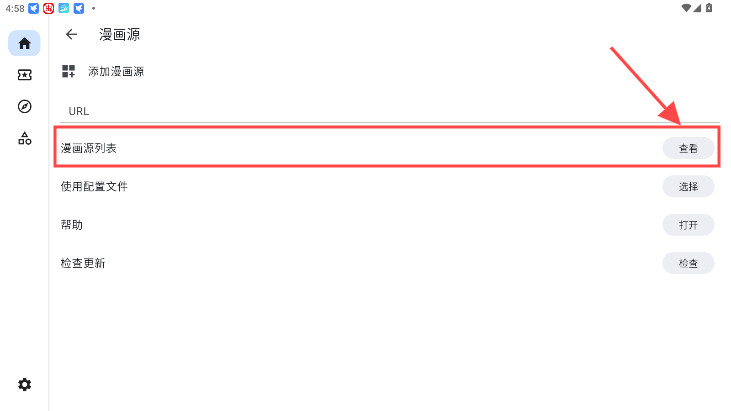 1、启动应用后,在主界面中选择需要添加的漫画源列表;