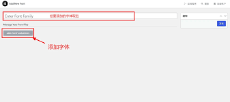 3. 添加自定义字体:若使用google fonts字体,可直接在搜索框输入字体名称查找添加。对于自定义字体文件,点击“上传字体”按钮,选择准备好的字体文件上传。