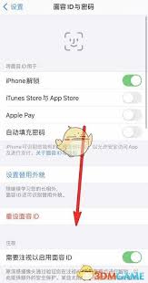 3. 点击进入后,输入你的密码或通过其他身份验证方式,如触控id(如果你的设备支持),以进入面容id设置页面。