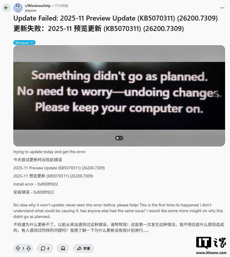 12 月 5 日消息,科技媒体 Windows Latest 今天(12 月 5 日)发布博文,报道称微软适用于 Windows 11 的 11 月可选更新遭遇大量用户投诉,建议尚未升级的用户暂缓安装。