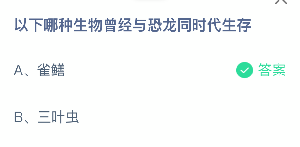 以上就是以下哪种生物曾经与恐龙同时代生存,支付宝蚂蚁庄园2025年12月5日答案最新,更多精彩内容,请点击关注本站手游网更新!