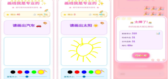 一款全新的绘画解谜游戏现已登场!在这个游戏中,你无需遵循任何固定规则,完全自由发挥你的想象力和创造力。你可以用线条来绘制出令人惊叹的图形,没有限制,只有无限可能。在这一款游戏中,有许多不同类型的关卡等待着你去挑战。其中一些关卡要求你描绘升腾的太阳,利用彩色笔触创造出丰富的光影效果;另一些关卡则需要你勾勒出汽车的轮廓,既有简笔画的表现手法,也有精细刻画结构细节的方法,让你在创作中体验到多样化的可能性。这款游戏不仅考验你的创造力和想象力,更考验着你的耐心与毅力。每一个线条的选择都是你对世界的一种表达方式,每一次尝试都是一次向未知世界的探索。在这个充满挑战和惊喜的游戏中,让创造力在你的指尖流淌吧!