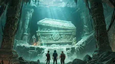 第一处隐藏宝箱位于雨林区域。抵达后需定位一座蛇形石雕并触发互动。解谜步骤为:首先激活左侧水位机关使水面升高;随后沿浮木路径行至中央平台;继而使用火油瓶引爆右侧岩壁障碍物。清除障碍后,沿原木登岸,跨至对岸并攀上阶梯;在高台处投掷炸弹摧毁前方石堆;随后从左侧边缘跃入右侧水池,在水下可视范围内即可发现宝箱——此即首个隐藏宝箱所在。