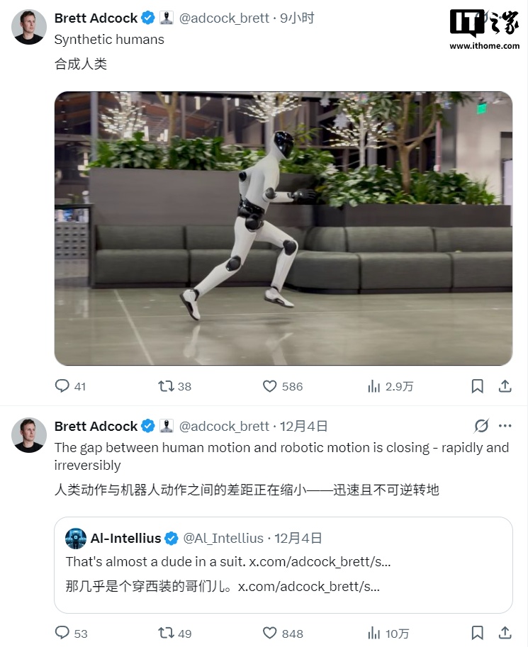 Brett Adcock 还表示,人类动作与机器人动作之间的差距正在缩小 —— 迅速且不可逆转。