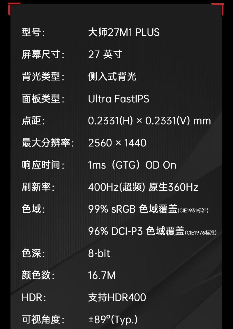 12 月 7 日消息,康冠新上架了一款 27 英寸的 2K 400Hz 显示器“大师 27M1 PLUS”,号称是“职业电竞显示器”,京东显示首发价 2499 元,12 月 11 日 20:00 开售。