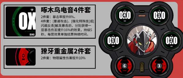 啄木鸟电音4件套可以提供特殊技以及闪避技的暴击收益,提高暴击伤害,而獠牙重金属2件套可以使物理属性伤害提高10%,这2个驱动都可以将比利奇德的输出最大化。