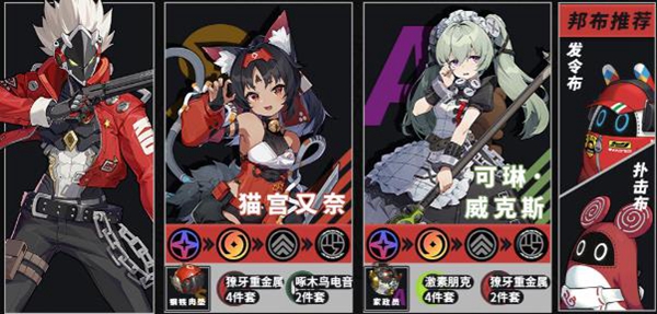 这套配置可以充分发挥比利奇德的站场输出能力,在不考虑失衡以及属性异常的机制下,通过自身的技能特性来创造优势,配合猫又的支援来弥补不足。