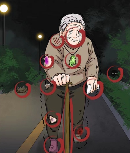 我们需要通过场景中所有的线索,找到老奶奶身上的诡异之处才可以通关,一共有12个地方,大家可以根据上方答案或者下方攻略完成挑战。