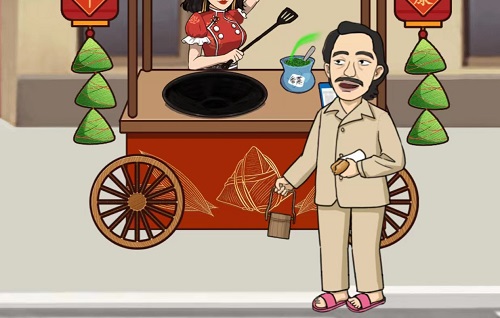 1、根据小吃摊上方的牌子,从左至右分别是:汤圆、粽子、荷包蛋、牛肉面、豆腐脑、番茄炒蛋;