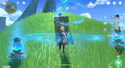 3、到达史莱姆所在的地方,用风系角色的技能,激活三颗侦测晶体,就能拿到宝箱了。