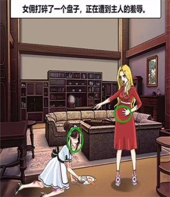 8、分别点击金发女佣的“头”、“手”上的伤痕;