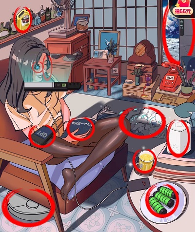在本关卡中,我们在有限的时间内需要找出所有与Ai智能相关的内容,如果点击错误就会扣分,除了部分和轻松,还有部分需要借助场景的道具才可以找到。