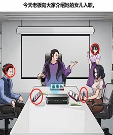 10、点击董事长女儿的“脸”、点击男主的“脸”和手上的“手表”、点击主管手中的“钢笔”、点击新员工的“脸”。