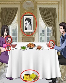 8、点击地上的“老鼠药”、“董事长遗照”、“宝宝”、两人手上戴着的“情侣手表”;