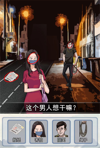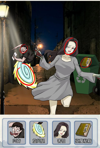 报纸、害怕、阴笑、绳子、指甲、告示牌、衣服、害怕、兴奋、旋风腿、害怕、驱魔秘籍