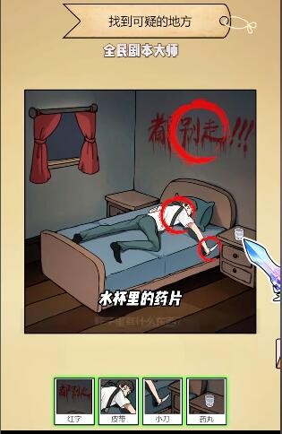 4、任意投票,再点击小刀、墙上的字、药丸、皮带
