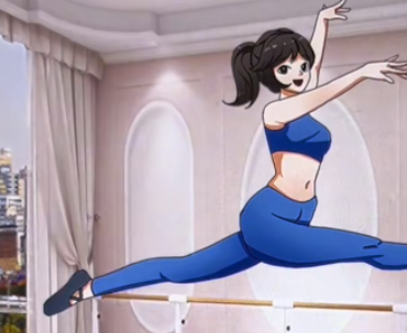 舞蹈生:蓝色练功服+练功鞋+马尾,再把空中劈叉给她,点击相机。