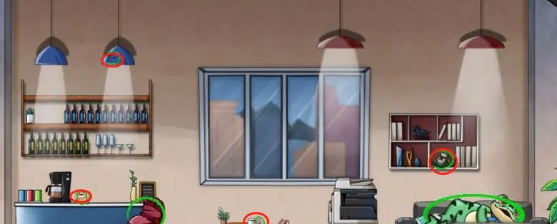 1、玩家进入游戏关卡后首先点击下方的办公室里有奋斗蛙、logo蛙。