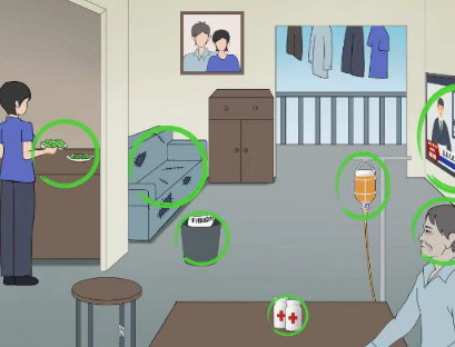 3、点击妻子的遗照、保险人员、一大袋东西、手术同意书、坏掉的围栏。