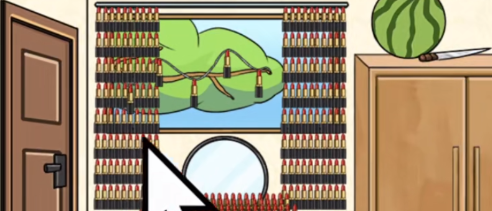 10、点击左边墙壁,点击墙壁上的口红。