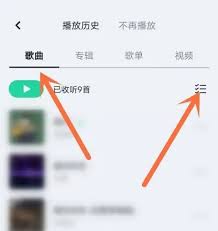 2. 找到歌曲播放记录的相关区域。通常会有一个类似于播放历史或最近播放的选项,点击进入该页面。