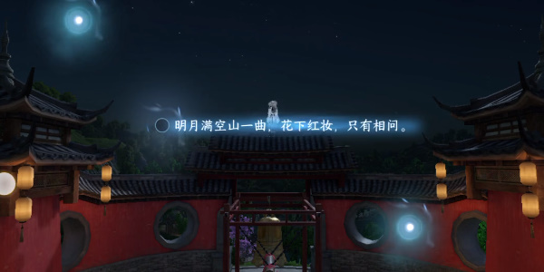 3、随着视野移动到院内,我们点击光点并用回廊作为下一个意象写出第二句词。