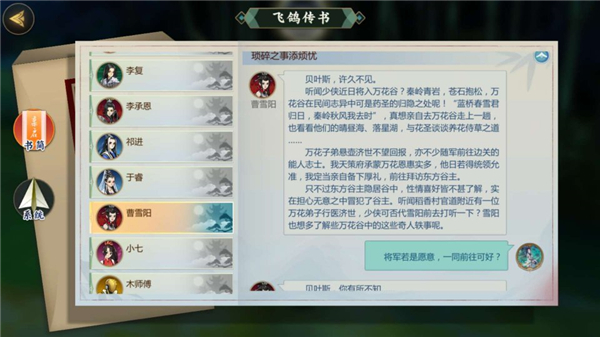 曹雪阳的获取前置条件是完成朱建秋的2个羁绊任务,曹雪阳完成3个羁绊任务,并且用天策弟子击杀悬赏神秘首领,可以解锁好感度系统。曹雪阳需要的好感物品有马草、牡丹、天灯、光明铠、虎牙令。
