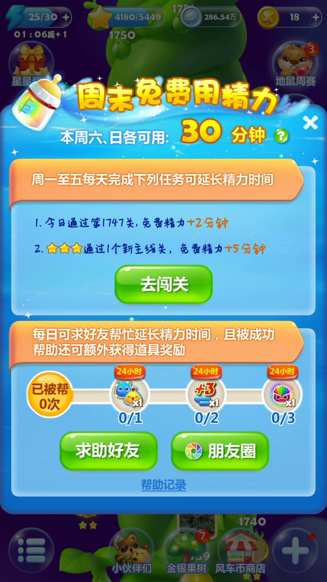 周末两天登陆各可用30分钟,周一至五完成规定任务还能延长无限精力使用时间。
