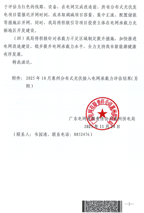 附件:2025年10月惠州分布式光伏接入电网承载力评估结果