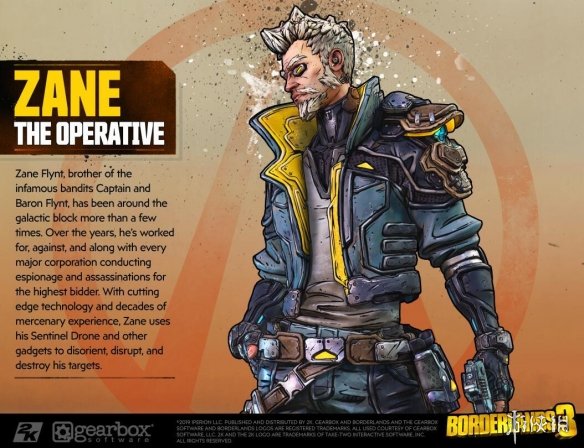 作为臭名昭著的强盗头子Baron Flynt的兄弟,赞恩在数十年间在那些庞大的企业巨头手底下干脏活,为出钱最多的人卖命。凭借着顶尖的科技和多年的佣兵经验,赞恩利用手上的无人机和其他把戏戏弄、迷惑和毁灭他的敌人。