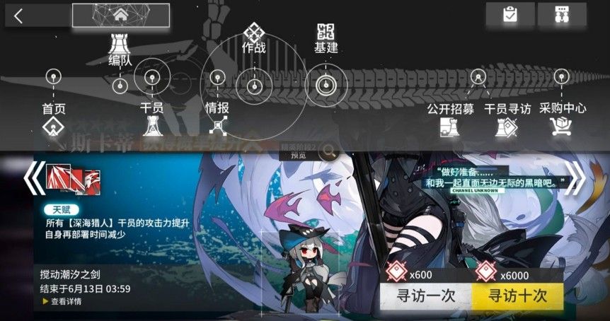 •第一次上线跳出公告不要马上关掉,点选任意一个寻访的公告(没有就点新人寻访),就会跳过领取每日60神智进入卡池。